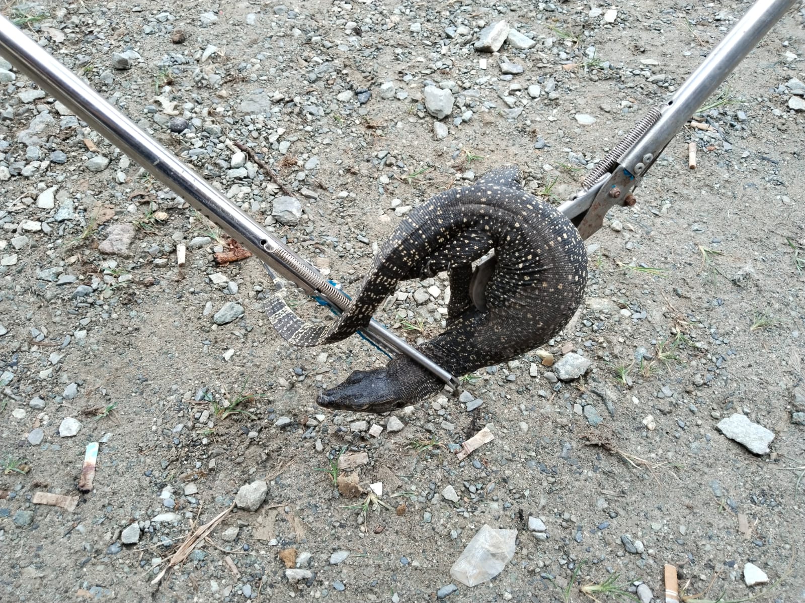 Proses evakuasi berlangsung cepat, dan dalam beberapa menit, biawak berhasil diamankan dan dimasukkan ke dalam karung.
