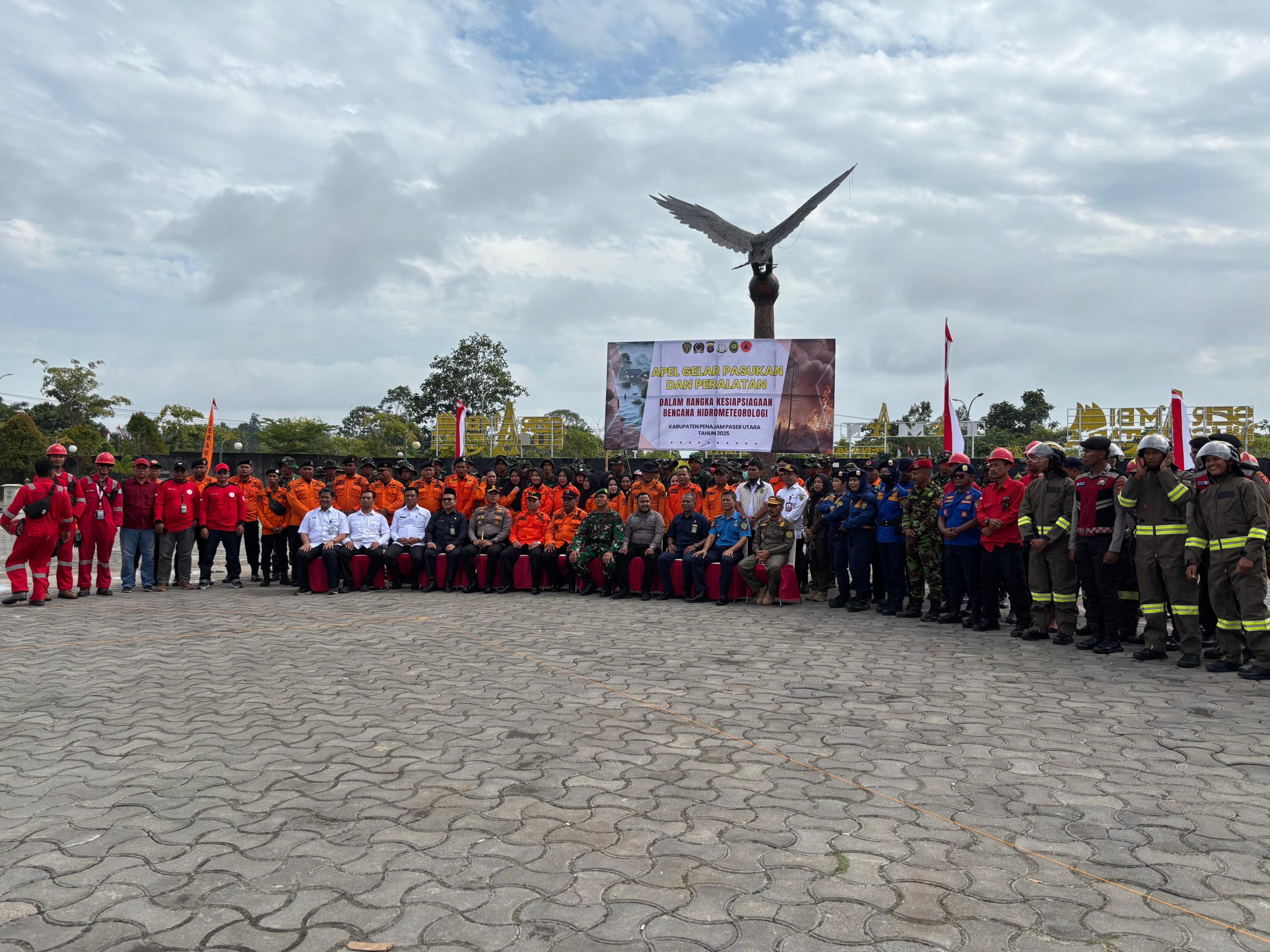 Dinas Penanggulangan Kebakaran dan Penyelamatan (DPKP) Kabupaten Penajam Paser Utara (PPU) mengikuti Apel Gelar Pasukan dan Peralatan dalam rangka kesiapsiagaan bencana hidrometeorologi di lapangan Kantor Bupati pada hari Rabu, 6 Agustus 2025. Kegiatan ini bertujuan untuk meningkatkan kesiapsiagaan dan respons cepat dalam menghadapi potensi bencana, terutama yang berkaitan dengan kebakaran hutan dan lahan. Kegiatan apel ini diakhiri dengan simulasi singkat kebakaran hutan dan lahan serta evakuasi korban.